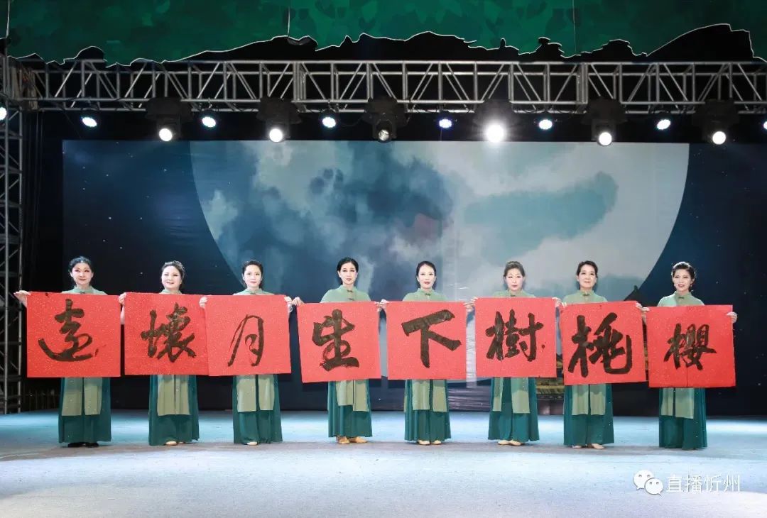 八位書法大家周如璧、張啟明、白崇厚、王利民、任俊威、王福生、殷渭靈、崔如玉,現(xiàn)場書寫的“櫻桃樹下望月懷遠”,既是晚會主題的表達,更是對傳統(tǒng)文化書法的一種敬仰;